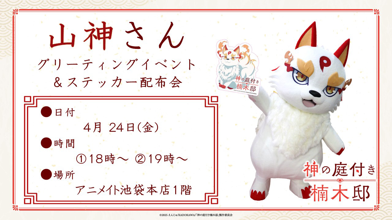 山神さんステッカーの配布会と山神さんの着ぐるみグリーティングが4月24日(金)にアニメイト池袋本店1Fにて開催!